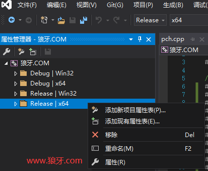 VS打开 "属性管理器"→“Release | x64” 上右键 → "添加现有属性表" → 选择SDK示例项目中的 “BimBaseSDK.props” 文件